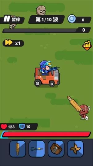 3、驾驶战车在指定区域内巡逻,利用障碍物卡位阻挡僵尸前进,集中火力逐波清除避免被围攻导致失败。